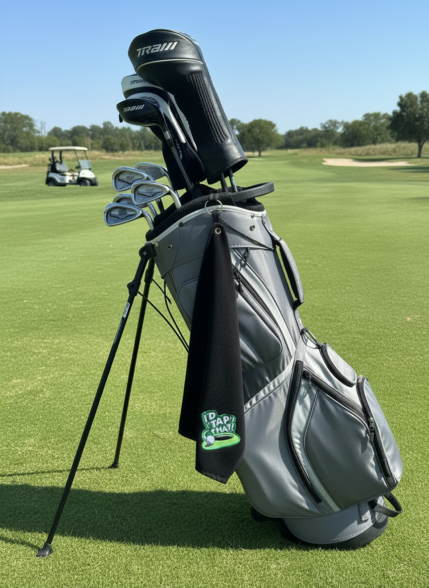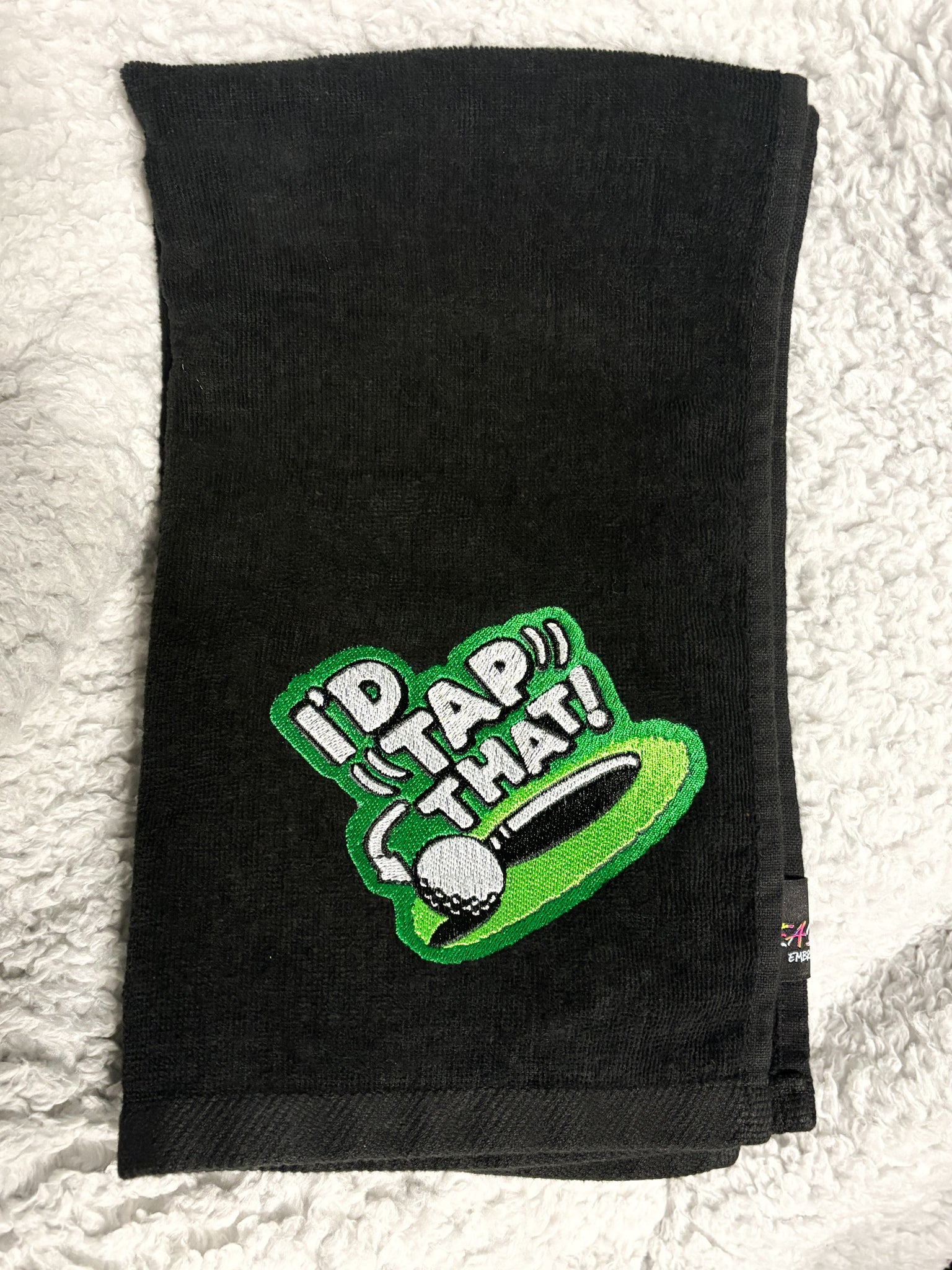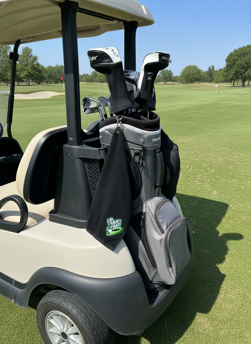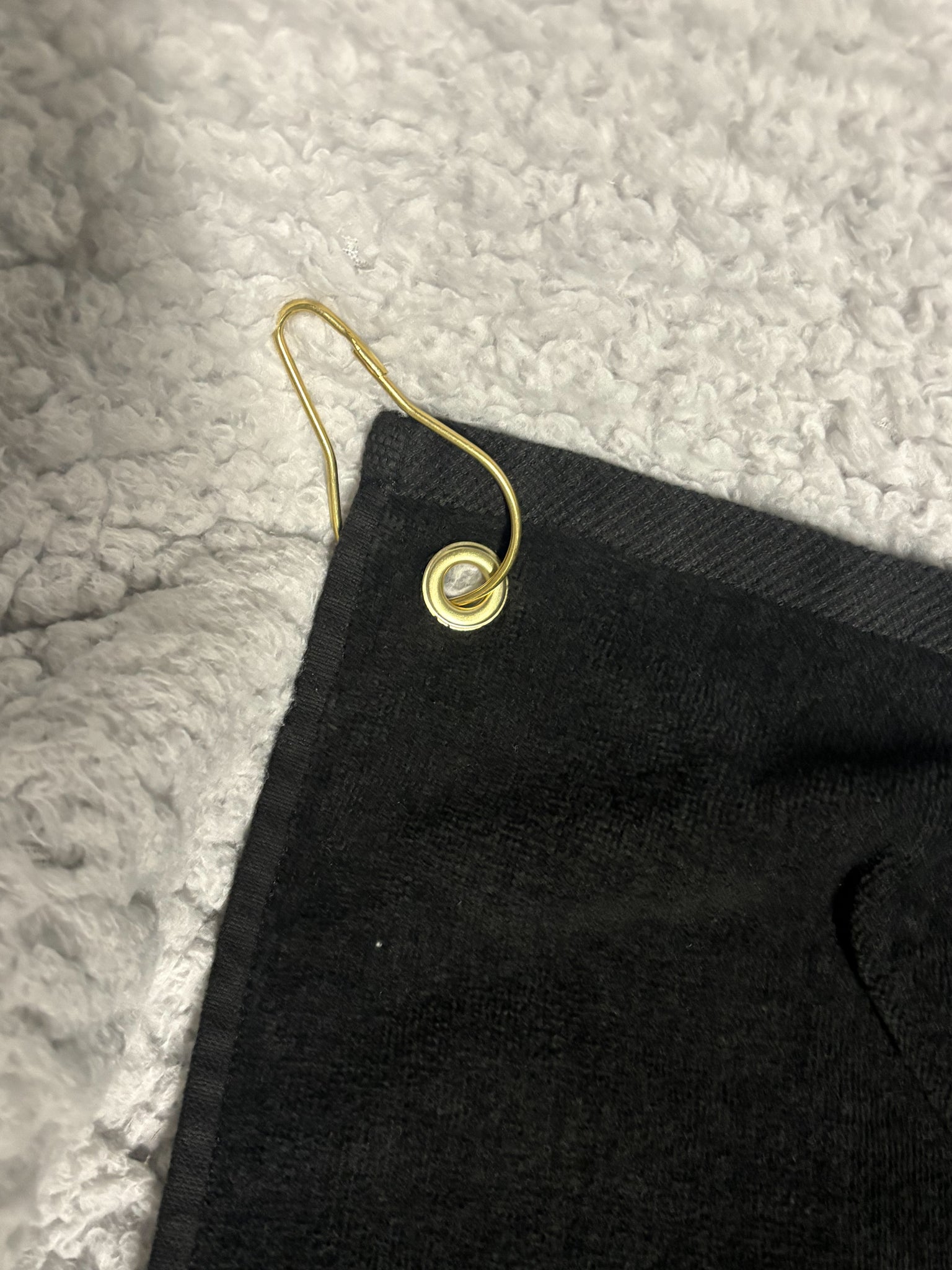 100% cotton Golf Towels. Towels are a soft and absorbent velour on one side and terry loops on the other side. These towels have a brass finish corner grommet and comes with a brass finish clip to easily hang it from your golf bag or even a gym bag.