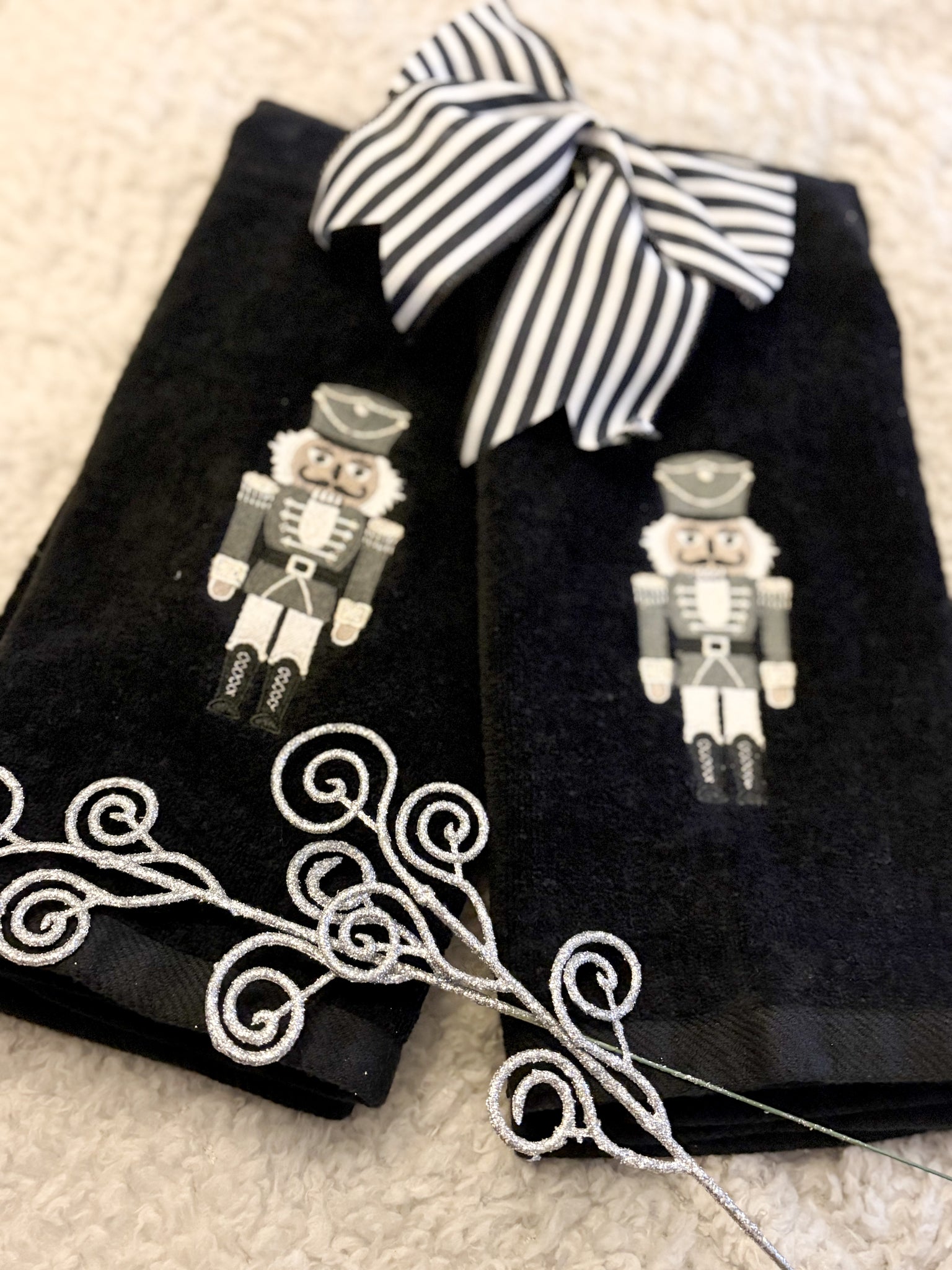 This is for our Silent Knights. The black and silver finish brings a new look to the holiday season. Whether you are in your goth phase or just love the simplicity of black and white, this is for you! Plush and absorbent hand towel, that's been beautifully embroidered to help celebrate the holiday season!! This towel will add the perfect touch to your holiday decor this season. Perfect gift for the holidays, birthday, House warming, Just Because, and any other occasion you can think of!