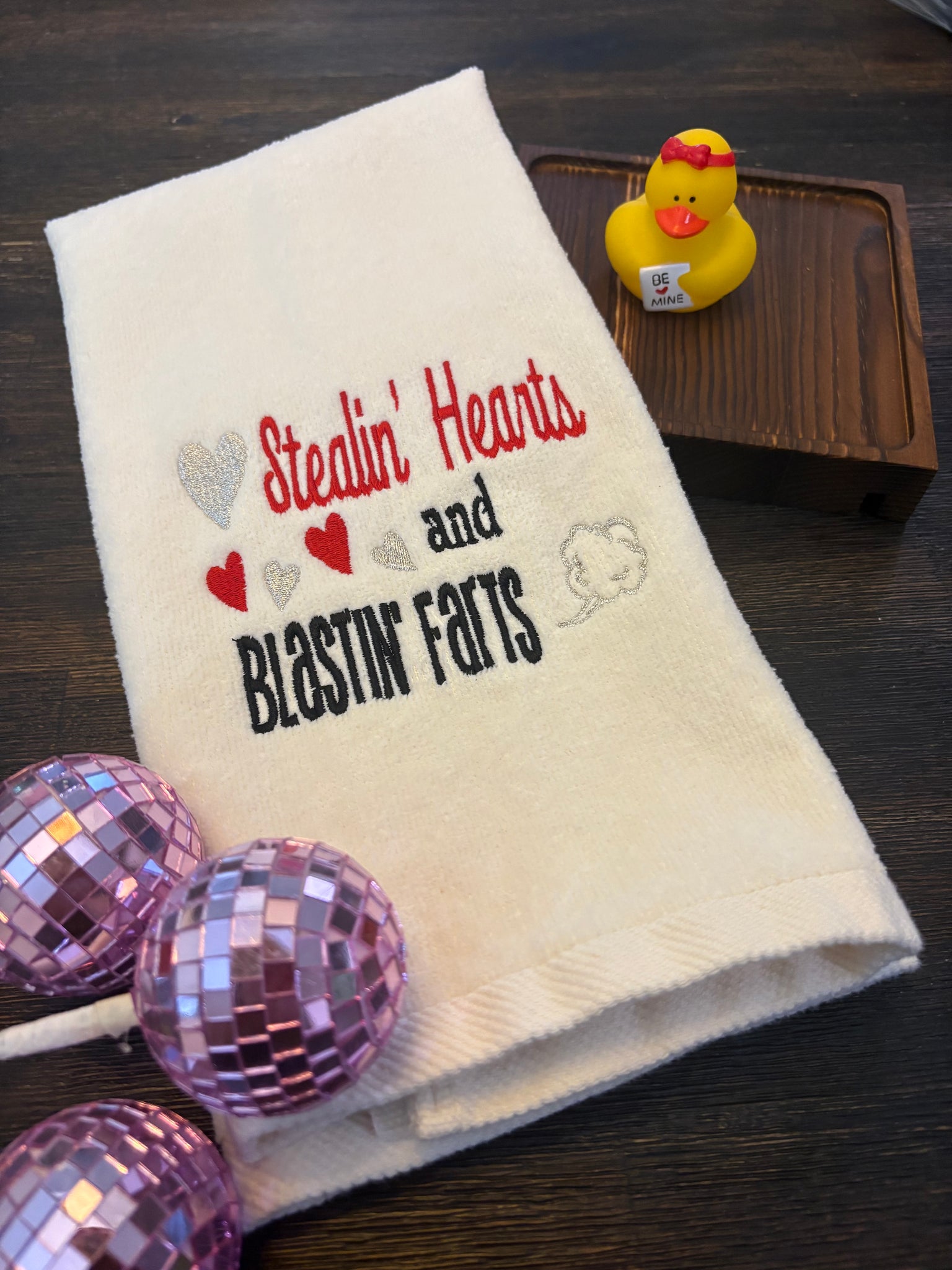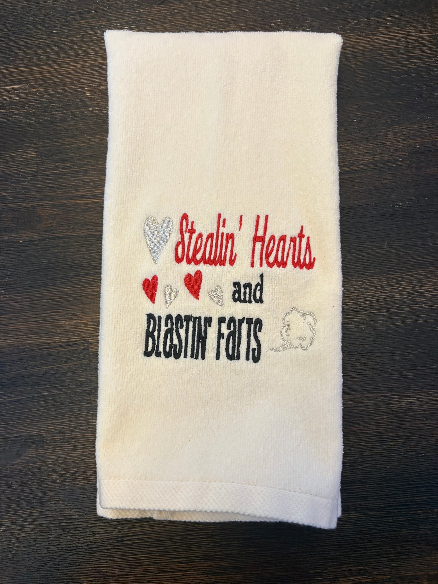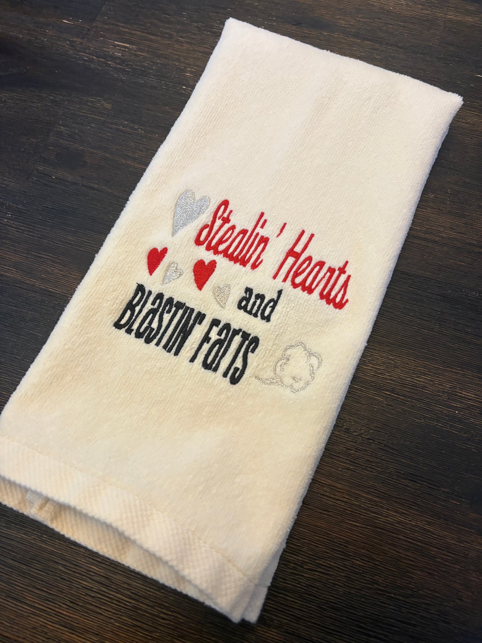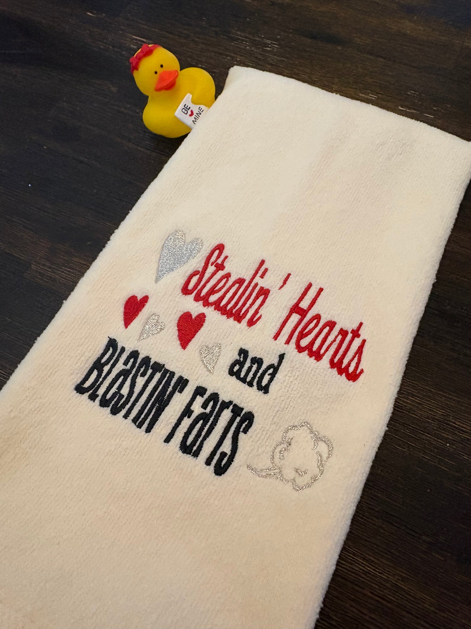 Embroidered 100% cotton Kitchen Towels. Plush and absorbent they are perfect for the kitchen or bathroom! This fun and silly towel lets you know you made it through the hardest part of the first fart lol!